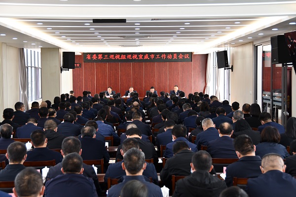 按照省委統一部署,近日,省委第三巡視組巡視宣威市工作動員會召開。會前,巡視組組長程猛主持召開與中共曲靖市委常委、宣威市委書記解天云,宣威市委副書記、市長許韶發的見面溝通會,通報了巡視任務,提出了工作要求;巡視組副組長楊春華傳達了省委書記王寧聽取巡視工作有關情況匯報時的講話要求。會上,程猛作了動員講話;楊春華通報了干擾、對抗巡視的一些典型問題;解天云主持會議并表態講話。