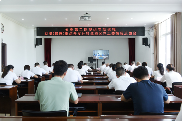 根據省委統一部署,省委第二巡視組向勐臘(磨憨)試驗區黨工委反饋了專項巡視情況。會前,省委第二巡視組組長曹開慶傳達了省委書記王寧在主持省委常委會會議聽取十一屆省委第二輪專項巡視情況匯報時的講話要求,向西雙版納州副州長、勐臘(磨憨)試驗區黨工委書記周亮生反饋了專項巡視情況。會上,參會人員集中學習了習近平總書記關于巡視整改的重要論述及黨規黨紀有關規定要求;曹開慶向勐臘(磨憨)試驗區黨工委領導班子反饋了專項巡視意見,對專項巡視整改提出明確要求;周亮生主持反饋會議并作表態發言。