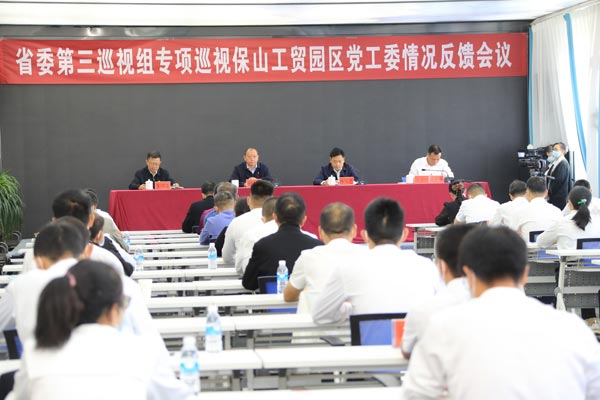省委第三巡視組、省委巡視辦有關同志,保山產業園區黨工委領導班子成員出席會議;市紀委監委、市委組織部、市委編辦、市發改委、市財政局、市工信局、市科技局、市商務局等有關部門領導,保山產業園區內設機構負責人、平臺公司主要負責人、永盛街道黨政主要負責人列席會議。