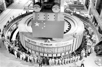 中國電建黨委聚焦“國之大者”,圍繞打造“精工重器”開展巡視監督,護航國家重大項目建設。圖為白鶴灘水電站二號機組轉子吊裝現場。中國電建黨委巡視辦 供圖