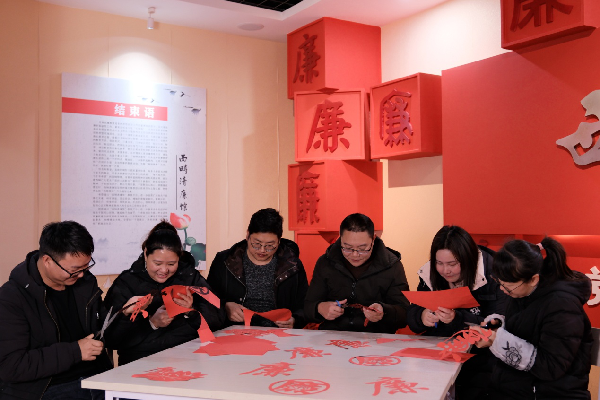西疇縣紀(jì)委監(jiān)委充分發(fā)揮廉潔文化的教育引導(dǎo)作用,在春節(jié)來臨之際,組織開展剪“廉畫”、傳“廉意”活動(dòng),將廉潔文化與剪紙藝術(shù)有機(jī)結(jié)合,寓教于樂,用傳統(tǒng)的藝術(shù)形式為新年增添“廉味”,營造風(fēng)清氣正的節(jié)日氛圍。圖為該縣紀(jì)檢監(jiān)察干部正在開展剪“廉畫”活動(dòng)。(李忠馨 攝)