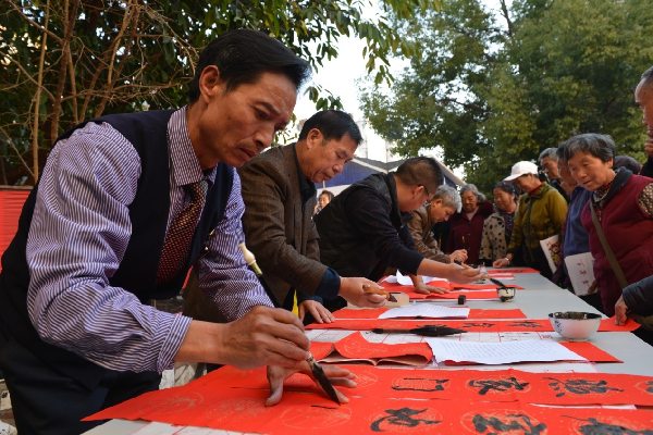 無聯(lián)不成春,有聯(lián)春更濃。新春將至,丘北縣廣大黨員干部走上廣場,揮毫潑墨書寫廉潔春聯(lián)贈予群眾,在傳遞廉潔理念的同時(shí),增加節(jié)日的喜慶氛圍。(張文慧 攝)