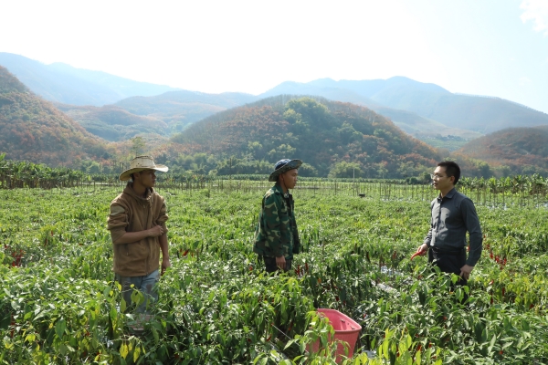 金平縣紀委監委緊盯春耕備耕種子質量、物資保障等環節,深入田間地頭、蔬菜種植基地等開展一線監督,推動解決群眾“急難愁盼”。圖為該縣紀委監委工作人員向勐拉鎮頂崗村辣椒種植專業戶了解情況。(王世國 攝)