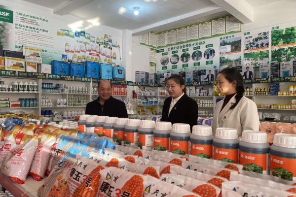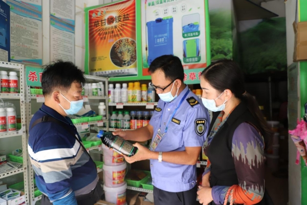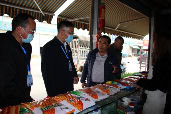 綠春縣紀委監委圍繞農業技術推廣、惠農惠民政策落實、農資儲備等重點環節開展監督檢查,把監督落實在春耕備耕一線。圖為監督檢查組聯合相關部門開展農資市場專項檢查。(楊云潔 攝)