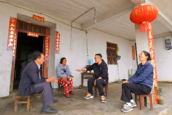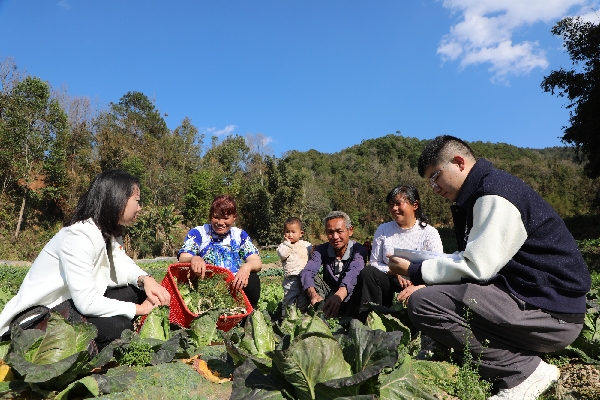 文山市紀委監委持續暢通信訪舉報渠道,轉變信訪工作方式,組織紀檢監察干部深入農戶庭院、田間地頭,實地走訪核查,及時解決群眾反映強烈的突出問題。圖為近日該市紀檢監察干部在追栗街鎮塘子寨村向農戶核實了解情況。(王銘堅 攝)