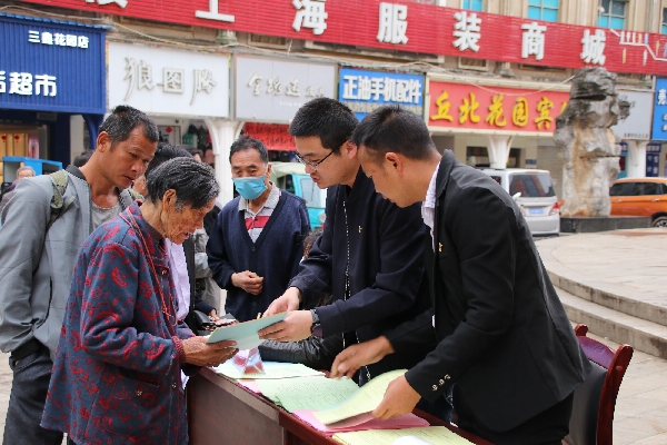 丘北縣紀委監委堅持以問題為導向,著力在暢通信訪渠道、排查梳理、跟蹤督辦等方面下功夫,建立信訪“流動工作站”,不定期流動到鄉鎮、村寨開展入戶訪查、趕集日接訪、巡回接訪等工作,零距離受理群眾利益訴求、處理群眾信訪舉報。圖為該縣紀檢監察干部到錦屏鎮財富廣場開展接訪工作,向群眾宣傳信訪舉報相關政策。(王靈惠 攝)