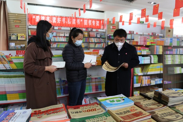 石屏縣紀(jì)委監(jiān)委監(jiān)督檢查組到校外書店開展監(jiān)督檢查,重點(diǎn)了解教師是否要求學(xué)生亂定教輔資料等情況,嚴(yán)防開學(xué)季藏“貓膩”。(何佳 攝)