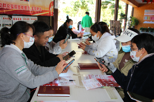瀘西縣紀委監委督促縣人力資源和社會保障局等部門多措并舉保證務工人員順利返崗的同時,為勞務舉報件開辟“綠色通道”,做到第一時間受理、第一時間轉辦、第一時間處理、第一時間跟進,以“硬核”姿態為外出務工者保駕護航。圖為瀘西縣紀委監委為外出務工人員宣講相關政策。(楊留勇 攝)