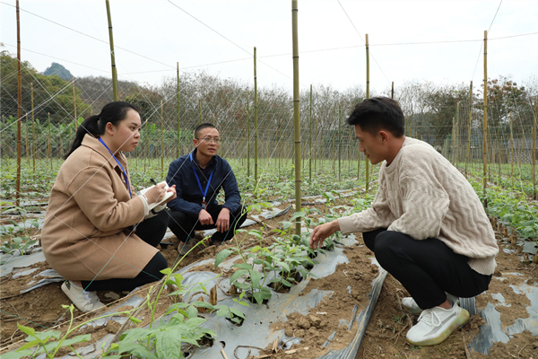 金平縣紀委監委把推動落實穩崗就業政策作為政治監督的重點內容,深入田間地頭開展調研監督,督促推動失業保險穩崗返還、就業補貼及失業保險金發放等政策落地落實。圖為該縣紀檢監察干部在田間地頭向勐拉鎮頂崗村蔬菜種植專業合作社相關人員了解情況。(劉連旺 攝)