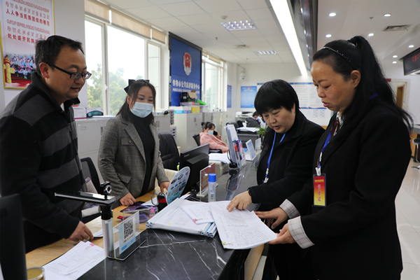 個舊市紀委監委緊盯穩崗就業政策落實、職能部門履職及干部作風建設等情況精準監督,推動各項穩崗就業政策落地見效。圖為該市紀檢監察干部深入市人力資源和社會保障局就業轉移服務窗口,了解就業幫扶政策等落實情況。(黃磊 攝)