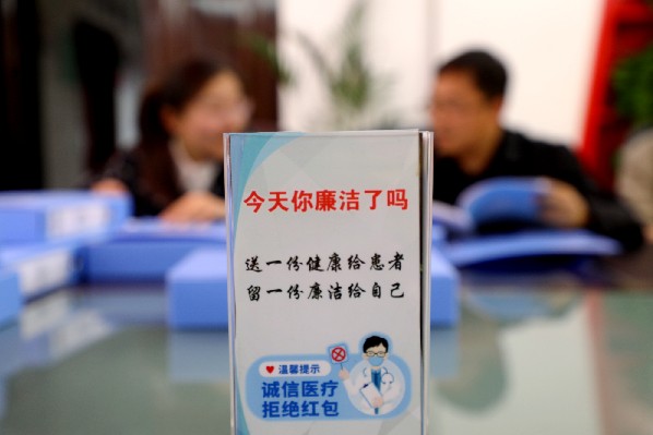 文山市紀(jì)委監(jiān)委大力推進(jìn)廉潔文化建設(shè)向機(jī)關(guān)、企業(yè)、學(xué)校、醫(yī)院、村居延伸,讓廉潔文化凈化各領(lǐng)域政治生態(tài)。圖為馬塘衛(wèi)生院制作的醫(yī)生廉潔牌,時(shí)刻提醒醫(yī)務(wù)人員廉潔自律、自尊自愛(ài)。(王銘堅(jiān) 攝)