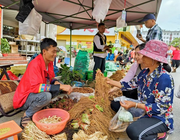 一歲一端午,一年一安康。每年端午,普洱人都有“吃藥根,換腸肚”的傳統(tǒng)習(xí)俗。端午節(jié)前后,思茅區(qū)大街小巷擺滿賣藥根的攤位,藥香滿街、人如潮涌,形成極有特色的端午藥市。(陳航 攝)