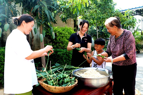 在景東縣錦屏鎮(zhèn),祖孫三代圍在一起包粽子,其樂(lè)融融,一裹一纏間讓中華傳統(tǒng)文化代代傳承。(商有鋒 攝)