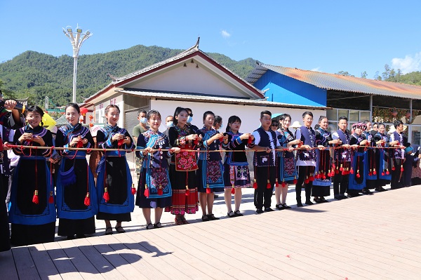 端午節(jié)期間,鎮(zhèn)沅縣古城鎮(zhèn)河西村哈尼族著上漂亮的服飾過(guò)端午,年輕漂亮的小伙姑娘們到村口,在竹竿上掛上寓意避災(zāi)除病、安康吉祥、益壽延年的紅線,迎接四方賓客。(普紅寧 攝)