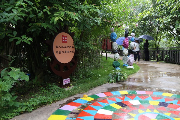 景洪市紀(jì)委監(jiān)委充分發(fā)揮廉潔文化教育引領(lǐng)、成風(fēng)化人的作用,結(jié)合當(dāng)?shù)孛褡逦幕厣蚜跃?、鄉(xiāng)規(guī)民約、家風(fēng)家訓(xùn)等清廉元素融入本地產(chǎn)業(yè)、鄉(xiāng)土文化中,推動打造一批寓廉于景、廉景相融的鄉(xiāng)村廉潔文化陣地,全面提升清廉文化的引領(lǐng)力、傳播力、感染力。圖為該市基諾山鄉(xiāng)巴飄村清廉步道。(李秋苒 攝)