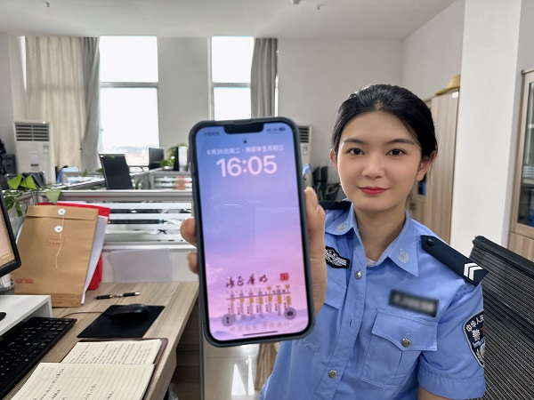 景洪市紀(jì)委監(jiān)委不斷增強(qiáng)廉潔文化的吸引力、滲透力和感染力,圍繞“廉潔”主題,精心設(shè)計推廣廉潔文化桌面壁紙,讓廣大黨員干部謹(jǐn)記廉圖、心向廉潔,在潛移默化中自覺增強(qiáng)廉潔意識。圖為該市公安局民警展示廉潔文化手機(jī)桌面壁紙。(楊瑩 攝)