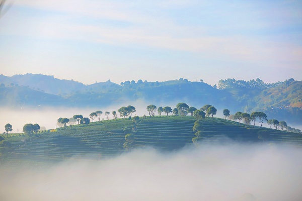 冬霧白茫茫,草木披紗裹玉妝,普洱市思茅區(qū)竜竜壩的茶山在霧中若隱若現(xiàn),猶如披上一件件柔和飄逸的紗巾,如夢如幻,宛如仙境。(李東梅 攝)