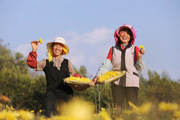 大雪時節(jié),馬龍區(qū)楊官田村金絲皇菊迎來采摘旺季,村民搶抓農時采摘、分揀、烘烤、加工金絲皇菊,臉上溢滿豐收的喜悅。(張玉玲 攝)