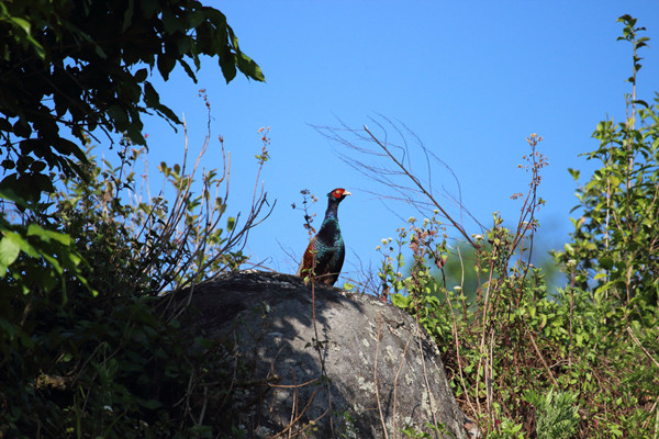 冬日的西雙版納的熱帶雨林仍然色彩斑斕。一只黑頸長尾雉悄悄鉆出草叢,享受著藍(lán)天綠草環(huán)抱的恬靜,它的“華麗迷彩服”在冬日暖陽的照耀下,更加的鮮艷亮麗、光彩奪目。(陳典攝)