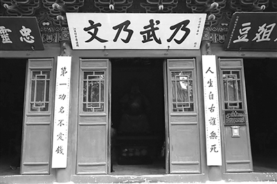 河南湯陰岳飛廟正殿楹聯“人生自古誰無死,第一功名不愛錢”,該聯的作者是清朝人何金壽。(資料圖片)