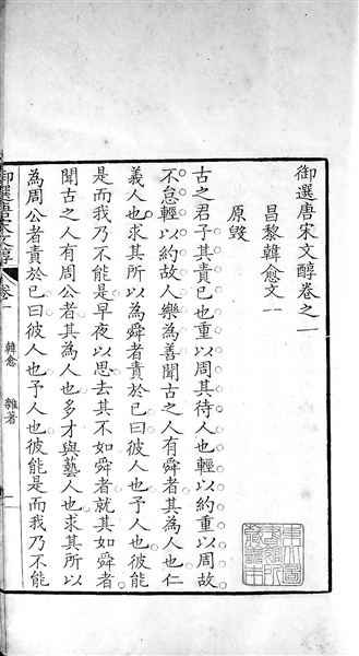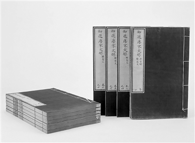 圖②、③:唐宋八大家文章的選本古代有很多種,這是清朝乾隆命人選編的《唐宋文醇》,內(nèi)含康熙、乾隆的評論文字,全書色彩斑斕,印制精美。