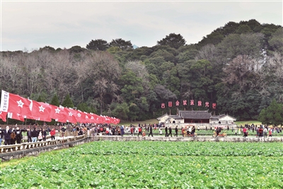 不忘初心方能行穩致遠,牢記使命才能開辟未來。圖為2023年1月26日,黨員干部群眾在福建省上杭縣古田鎮的古田會議會址參觀,汲取精神滋養。 中新社記者 張斌 攝