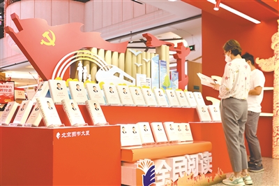 圖為近日讀者在北京圖書大廈瀏覽閱讀《習近平談治國理政》第四卷。 北京圖書大廈 供圖