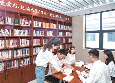 學(xué)習(xí)貫徹習(xí)近平新時代中國特色社會主義思想主題教育開展以來,廣大黨員、干部堅持讀原著學(xué)原文悟原理,系統(tǒng)全面學(xué)習(xí)習(xí)近平新時代中國特色社會主義思想。圖為近日江蘇省徐州市云龍區(qū)紀(jì)檢監(jiān)察干部在圖書角開展讀書學(xué)習(xí)交流。張俊哲 攝