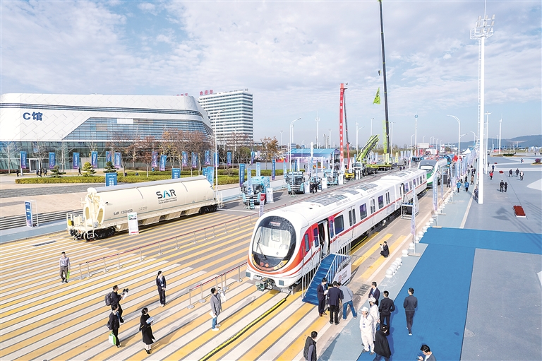 2023中國(guó)國(guó)際軌道交通和裝備制造產(chǎn)業(yè)博覽會(huì)近日舉辦,一批新型產(chǎn)品亮相。圖為博覽會(huì)戶外展示區(qū)。 新華社記者 陳思汗 攝