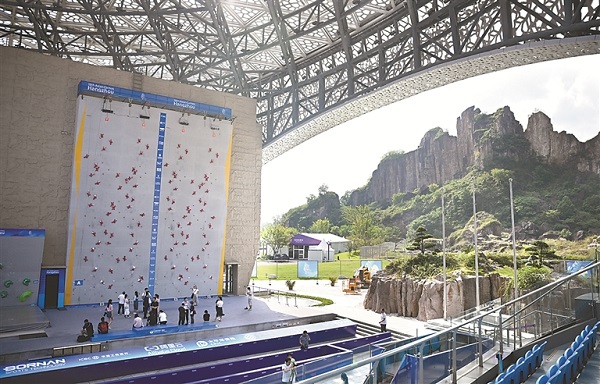 近日,在浙江紹興,羊山攀巖中心引人參觀。羊山攀巖中心所在地曾是廢棄礦坑,如今已蝶變為杭州亞運會攀巖項目的比賽場館。據了解,羊山攀巖中心在設計時充分考慮了亞運會攀巖比賽的需要,同時兼顧賽后利用,如賽后場館將變成一個融頂級賽事、培訓體驗、科普研學、休閑旅游于一體的國際化攀巖運動主題公園。 圖片來源:視覺中國