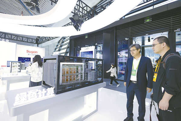 近日,2023年世界互聯網大會“互聯網之光”博覽會在浙江烏鎮舉行。該博覽會吸引了來自40多個國家和地區的580余家中外企業線下線上聯動參展,成為中國數字經濟蓬勃發展的生動縮影。圖為該博覽會上,相關企業展示的綠色計算服務器。 圖片來源:視覺中國