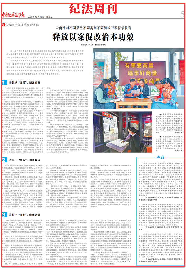 2023年12月13日,《中國紀檢監察報》深度報道:云南針對不同層級不同類別不同領域開展警示教育 釋放以案促改治本功效。
