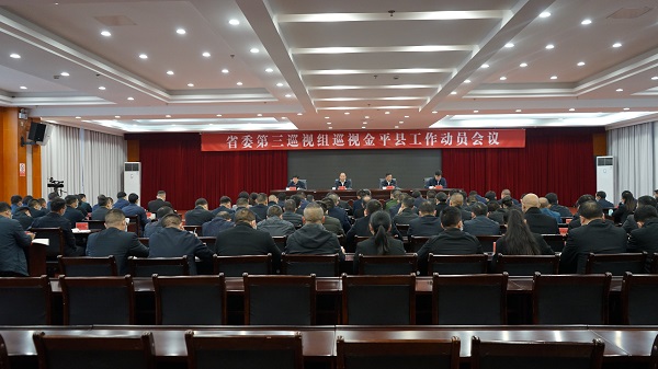 按照省委統一部署,3月9日,省委第三巡視組巡視金平縣工作動員會召開。會前,省委第三巡視組組長程猛主持召開與縣委書記余玉龍、縣長吳華昊的見面溝通會,通報了巡視任務,提出了工作要求;省委第三巡視組副組長楊春華傳達了省委書記王寧聽取巡視情況匯報時的講話要求。會上,程猛作了動員講話;楊春華通報了干擾對抗巡視工作的典型問題;余玉龍主持會議并表態講話。