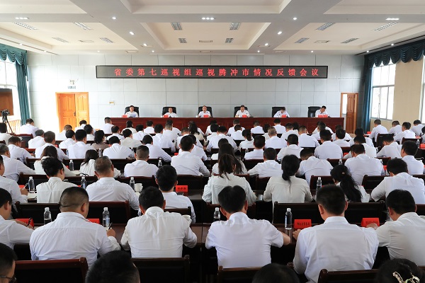 根據(jù)省委統(tǒng)一部署,2023年6月28日,省委第七巡視組向騰沖市反饋了巡視情況。會前,省委巡視組傳達了省委書記王寧在主持省委常委會會議聽取十一屆省委第四輪巡視情況匯報時的講話要求;向保山市委書記楊軍,市委副書記、市長陳銳通報了巡視情況;向騰沖市委書記馬子興反饋了巡視情況。會上,參會人員集中學(xué)習(xí)了習(xí)近平總書記關(guān)于巡視整改的重要指示精神及黨規(guī)黨紀有關(guān)規(guī)定要求;省委巡視組組長唐先勝向騰沖市反饋了巡視意見,對巡視整改提出明確要求;陳銳表態(tài)并提整改具體要求;馬子興主持反饋會議并表態(tài)。