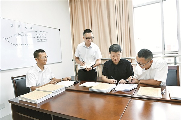 圖為文山州紀委監委案件審理室和第六審查調查室工作人員圍繞楊元輝案有關問題進行研討。查為媛 攝