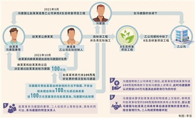 2021年5月,馮建國欲幫助其妻哥趙某某(另案處理)承攬B生態(tài)修復(fù)項(xiàng)目工程,讓趙某某掛靠乙公司進(jìn)行投標(biāo)。趙某某未告知馮建國自己無暇承攬工程的實(shí)情,便讓乙公司實(shí)際控制人麻某某投標(biāo)該工程并負(fù)責(zé)實(shí)際施工,在馮建國的協(xié)調(diào)下,乙公司順利中標(biāo)了B生態(tài)修復(fù)項(xiàng)目工程。2021年10月,趙某某向麻某某提出送給馮建國好處費(fèi),麻某某和趙某某商議后,決定通過趙某某送給馮建國100萬元。當(dāng)晚,趙某某將其代為收受100萬元賄賂的實(shí)情告知了馮建國,馮建國對趙某某收受該100萬元不排斥不反對,未提出將該100萬元?dú)w還麻某某,只是斥責(zé)趙某某這樣收錢的方法不隱蔽、不安全,趙某某遂讓家屬將該筆款項(xiàng)存于銀行,等過段時(shí)間再找個(gè)合適的方式交給馮建國。后因馮建國和趙某某先后被監(jiān)察機(jī)關(guān)立案調(diào)查,該100萬元至案發(fā)仍在趙某某處,馮建國對此知情。
