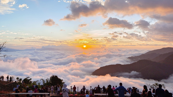 玉溪市哀牢山云海進入最佳觀賞季,眾多游客及攝影愛好者相邀登山,只為一睹哀牢山日出時分的云卷云舒。(刀雪鋒 攝)