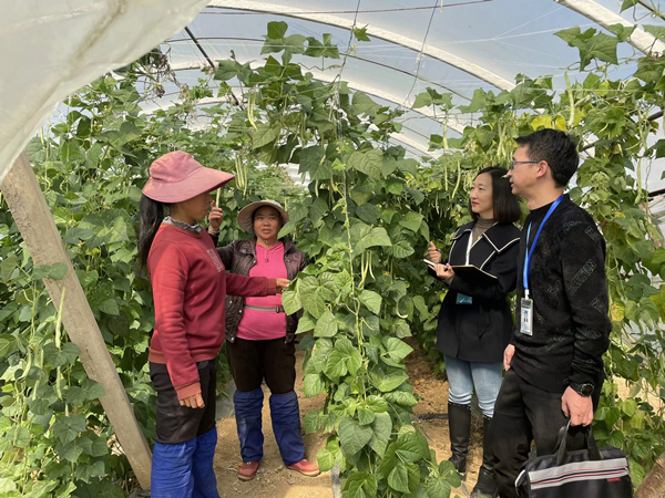個舊市紀委監委聚焦農產品產銷及政策落實等問題,靠前監督,切實解決農戶在生產經營中的實際困難。圖為紀檢監察干部深入大屯街道土基甸村向農戶了解蔬菜產銷情況。(阮亞萍 攝)