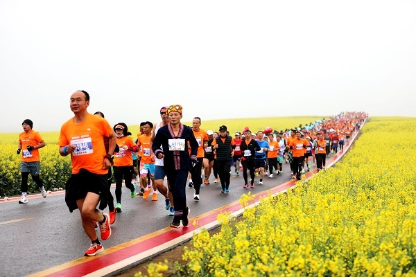 時至驚蟄,曲靖羅平花海馬拉松比賽鳴槍開跑,上萬名跑者共赴花海,跑進春天。(方俊 攝)