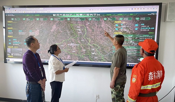 寧洱縣紀委監委駐縣農業農村和科學技術局紀檢監察組到縣林業和草原局調研,了解森林防火智慧云服務平臺的日常運行管理調度和信息監測預警推送情況,加強對火災調度、現場處置、責任落實情況監督。(鄧云 攝)