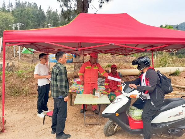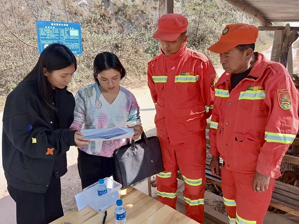 墨江縣紀檢監察干部在團田鎮森林和草原防火臨時檢查點聽取森林防火工作開展情況,壓實各級黨員干部責任,督促落實森林防火要求,做好監測預警和應急處置。(李麗清 攝)