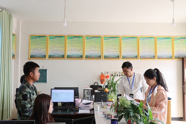 西盟縣紀檢監察干部在勐卡鎮林業站了解防火物資儲備、應急措施預案、值班值守等情況,聽取森林防滅火工作介紹,同時深入重點林區、景區以及田間地頭進行監督檢查。(娜英 攝)