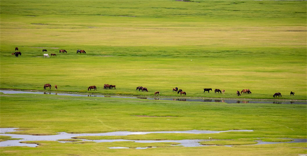 置身于廣袤的香格里拉依拉草原中,眼前那一片綠色襯著藍天白云映入眼簾,靜謐而壯麗,讓人心曠神怡。(和云舞 攝)