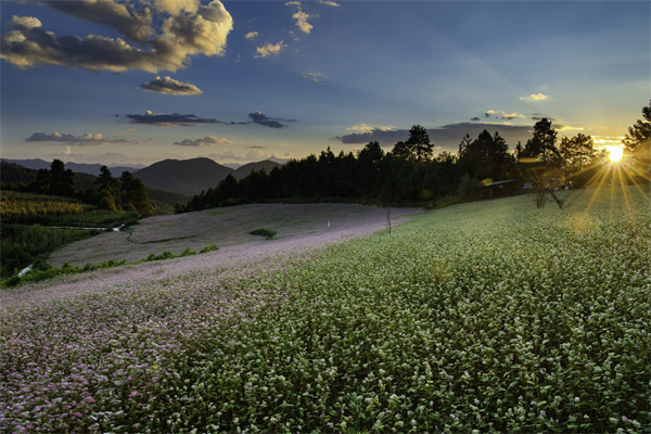 寒露時節,維西縣果咱底的蕎麥花田正值花期。蕎麥花一垅挨著一垅,一片連著一片,在落日余暉的照耀下唯美動人。(李建生 攝)