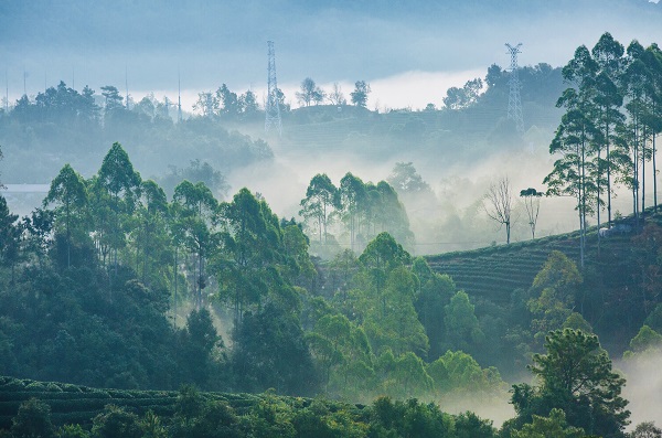 霧起鎖楓山,露從今夜寒。寒露時節,普洱茶山被清晨的霧氣籠罩,秋意悠長,如夢似幻。(子涵 攝)