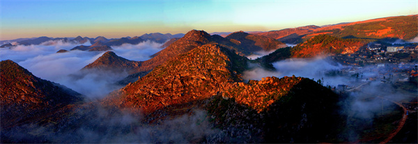 小雪時(shí)節(jié),瀘西東山梁子清晨的涼意與冬日暖陽形成的溫差帶來了層層薄霧,若隱若現(xiàn)的云霧在山間流淌,變幻莫測(cè),美不勝收。(黃光明 攝)