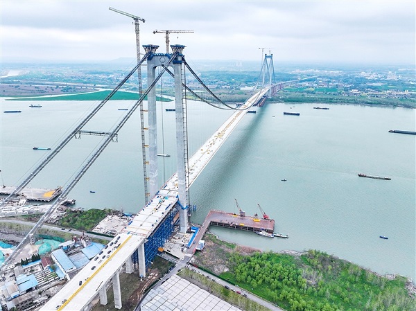 近日,1560米一跨過江、跨度規模位居世界前列的南京龍潭長江大橋主橋成功合龍,多項首創技術為橋梁智能建造增添新實踐。該橋建成后將大大縮短相關城市區位距離,進一步促進長江三角洲城市群一體化建設協同化發展。 新華社記者 李博 攝