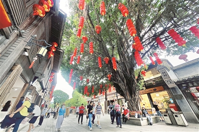 一片三坊七巷,半部中國近現代史。福建省福州市三坊七巷保留了唐宋遺留下來的魚骨狀坊巷格局和200多座明清古建筑,曾先后走出歷代名人400多位,被譽為“里坊制度活化石”“近代名人聚居地”。當地堅持守正創新,持續加強建筑文化遺產保護與活化利用,全力守護和傳承文化的“根”與“魂”。圖為近日,游客在三坊七巷參觀。王東明 攝