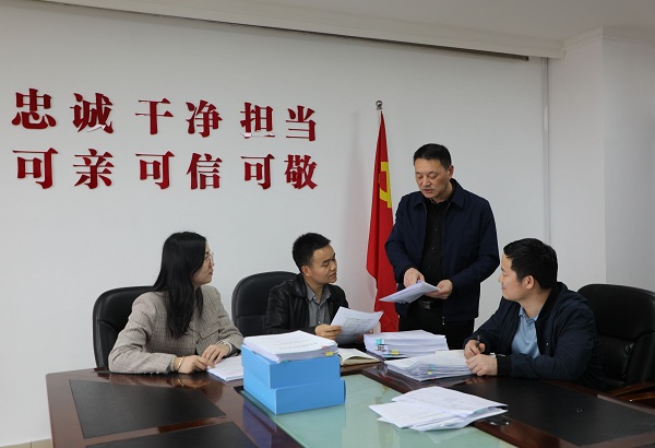 圖為吳曉華(右二)正在和同事們一起研判糾治“四風”專項監督檢查中發現的問題線索。資料圖片