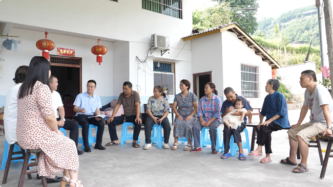 圖為李煒(左四)深入一線,與群眾面對面交流,收集問題線索。周弘歷 攝